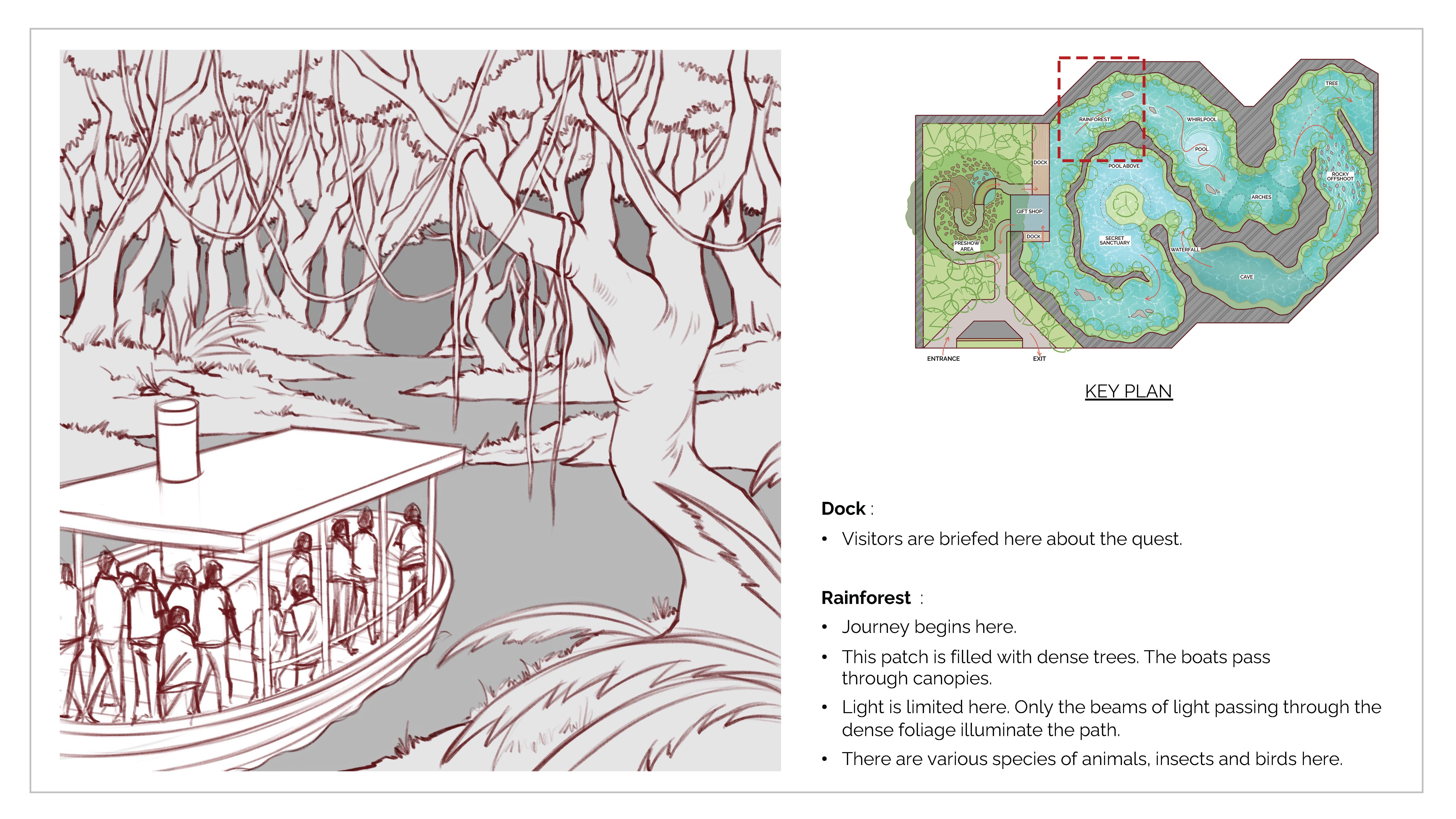 The goal of this project was to design a themed entertainment ride based on a short story. The story features a group of explorers and their search for a mythical bird called ‘Adarna’.